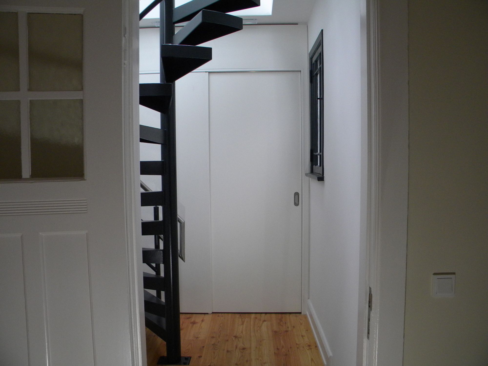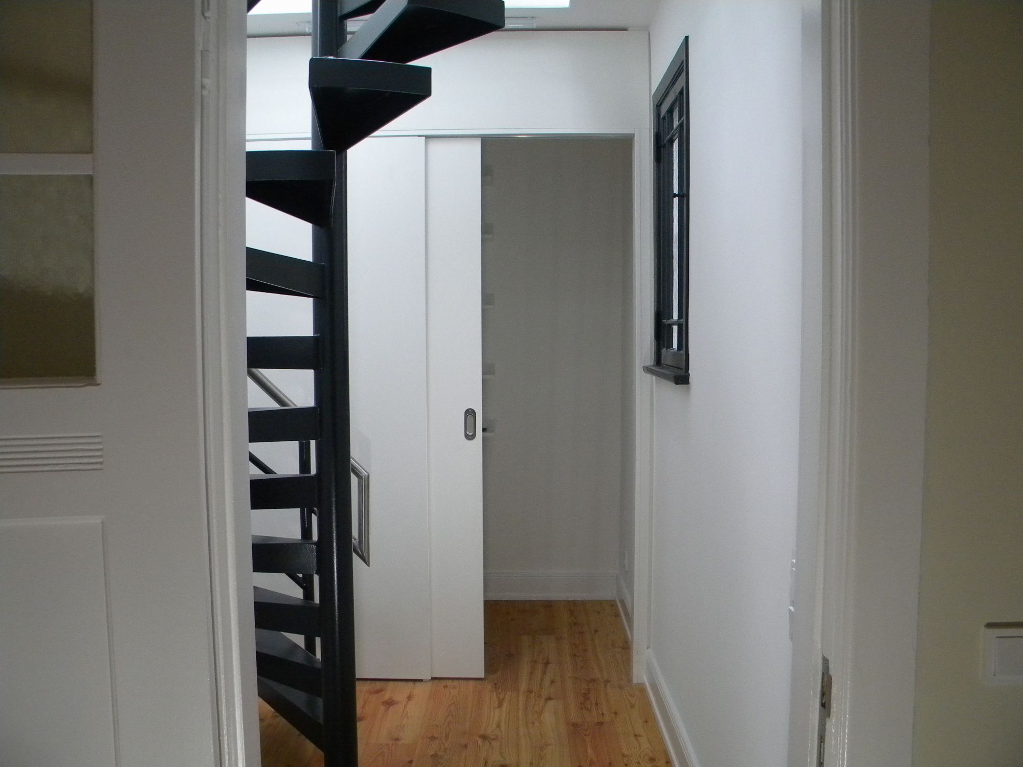 Es wurden die alten Bestandstüren aufgearbeitet, entfärbt und in neue Türzargen wieder eingepasst. Die Zargen wurden mit alten Bekleidungen wieder montiert.
