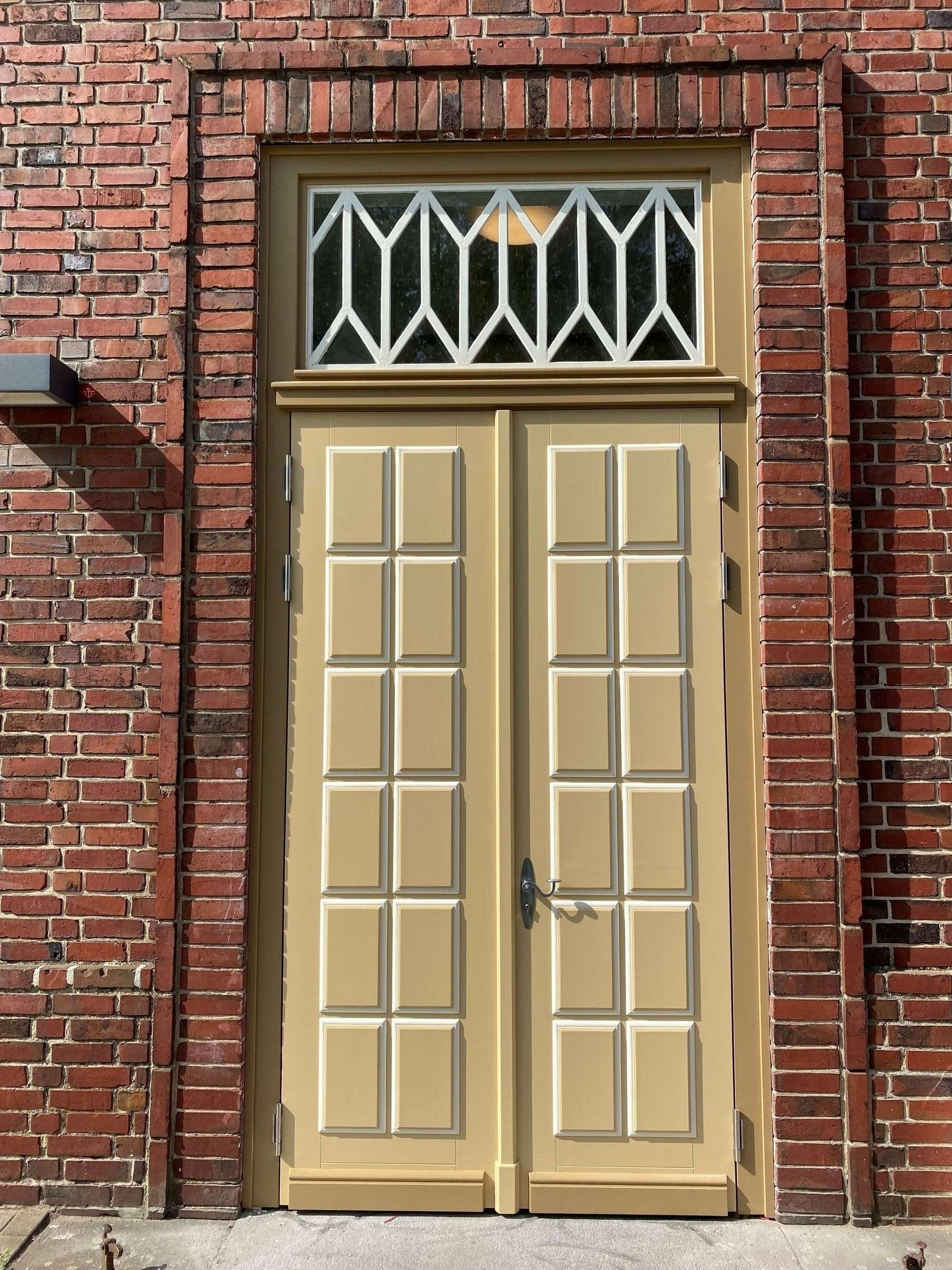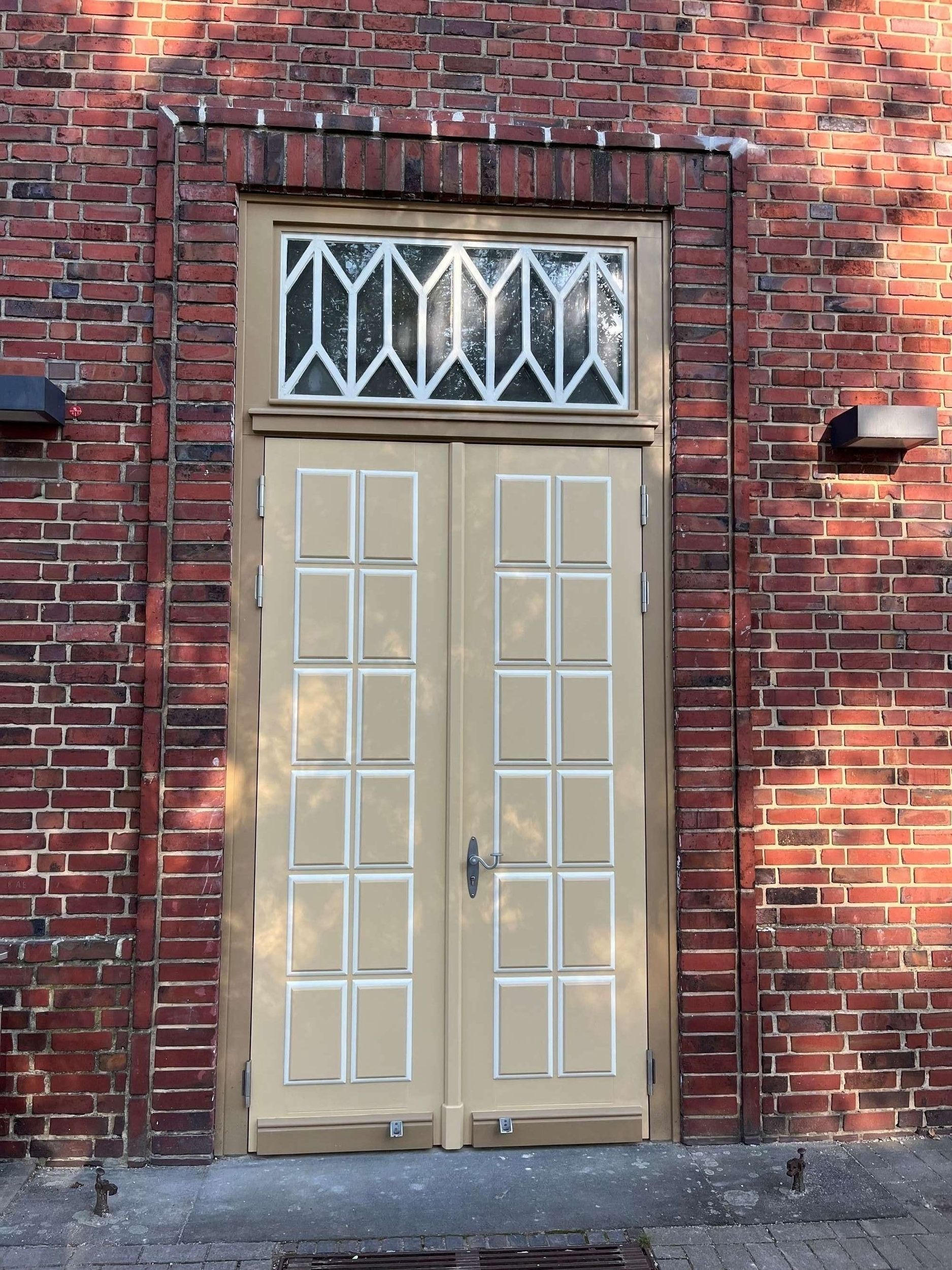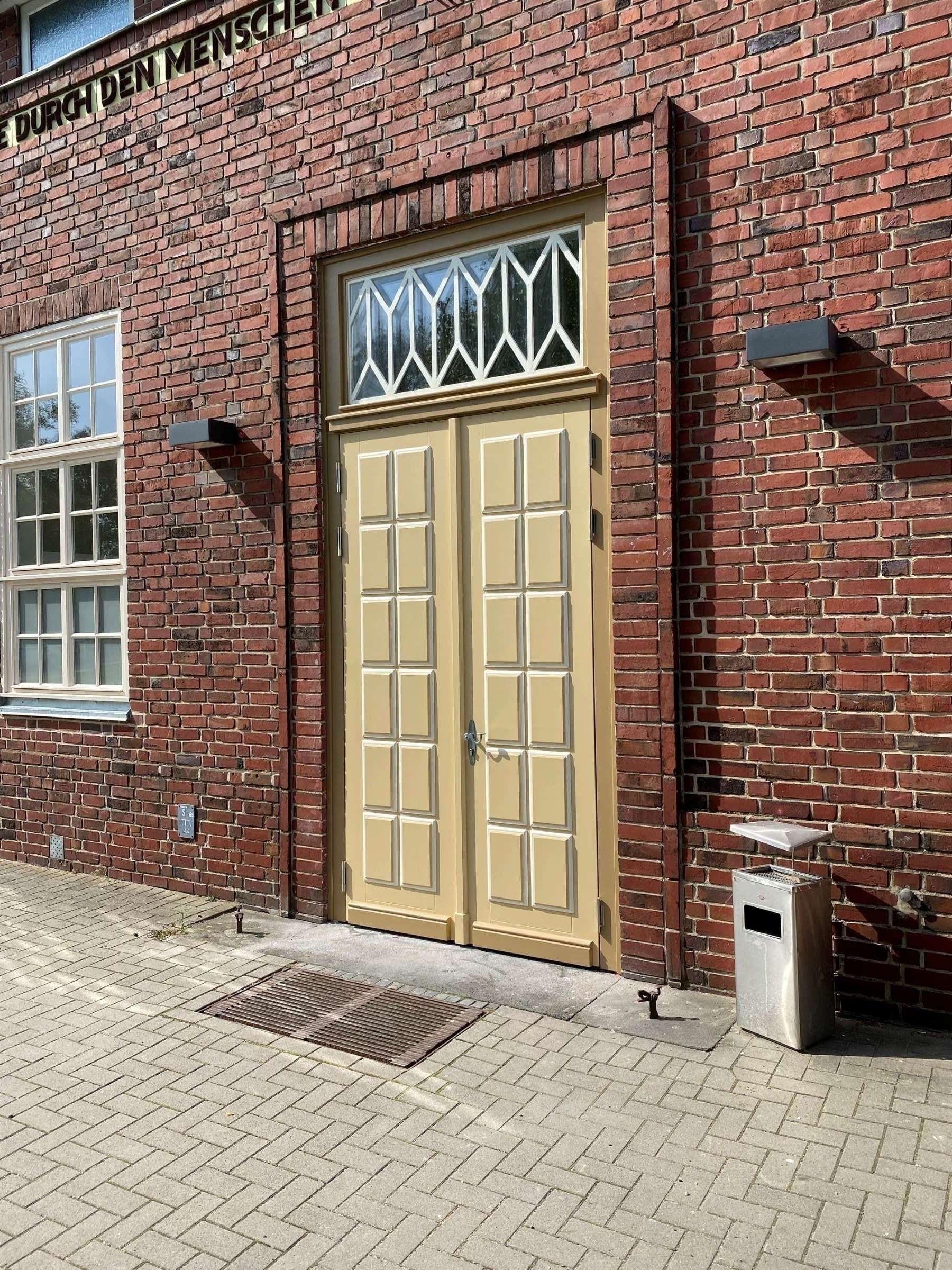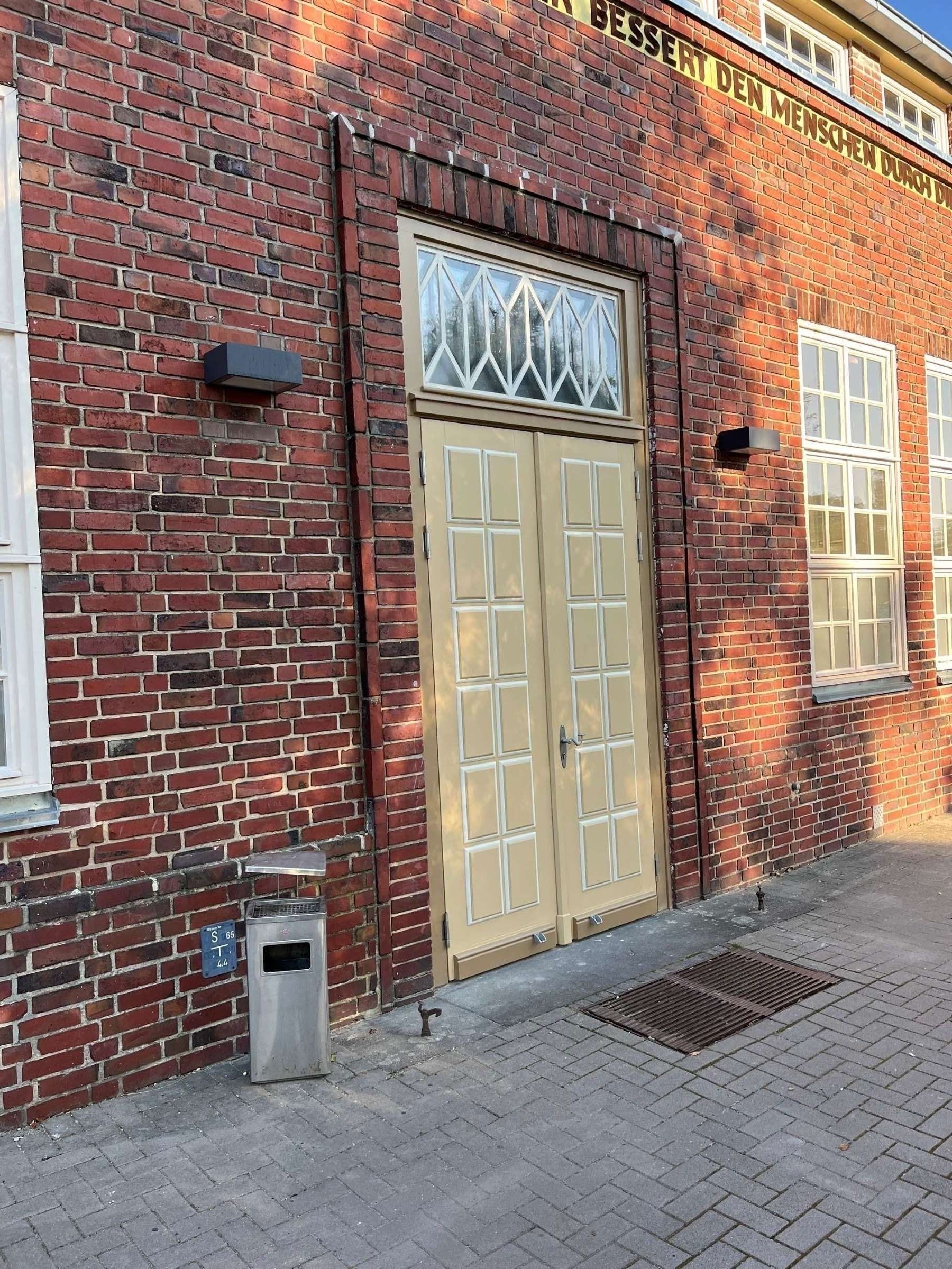 Die Modernisierung der Justizvollzugsanstalt sollte den aktuellen Anforderungen der Energieeffizienz entsprechen. Hierzu wurden u.a. die Hauseingangstür nach Denkmalschutz-Anforderungen in Farbe, Form und Gestalt übernommen und umgesetzt.