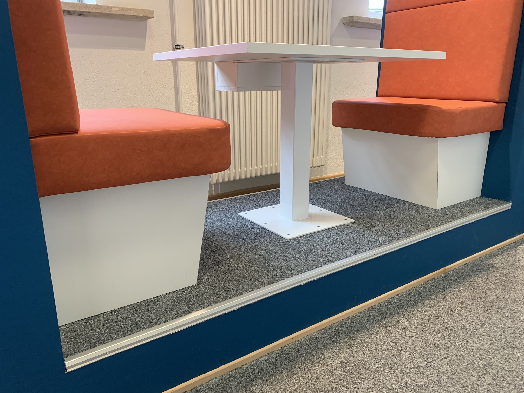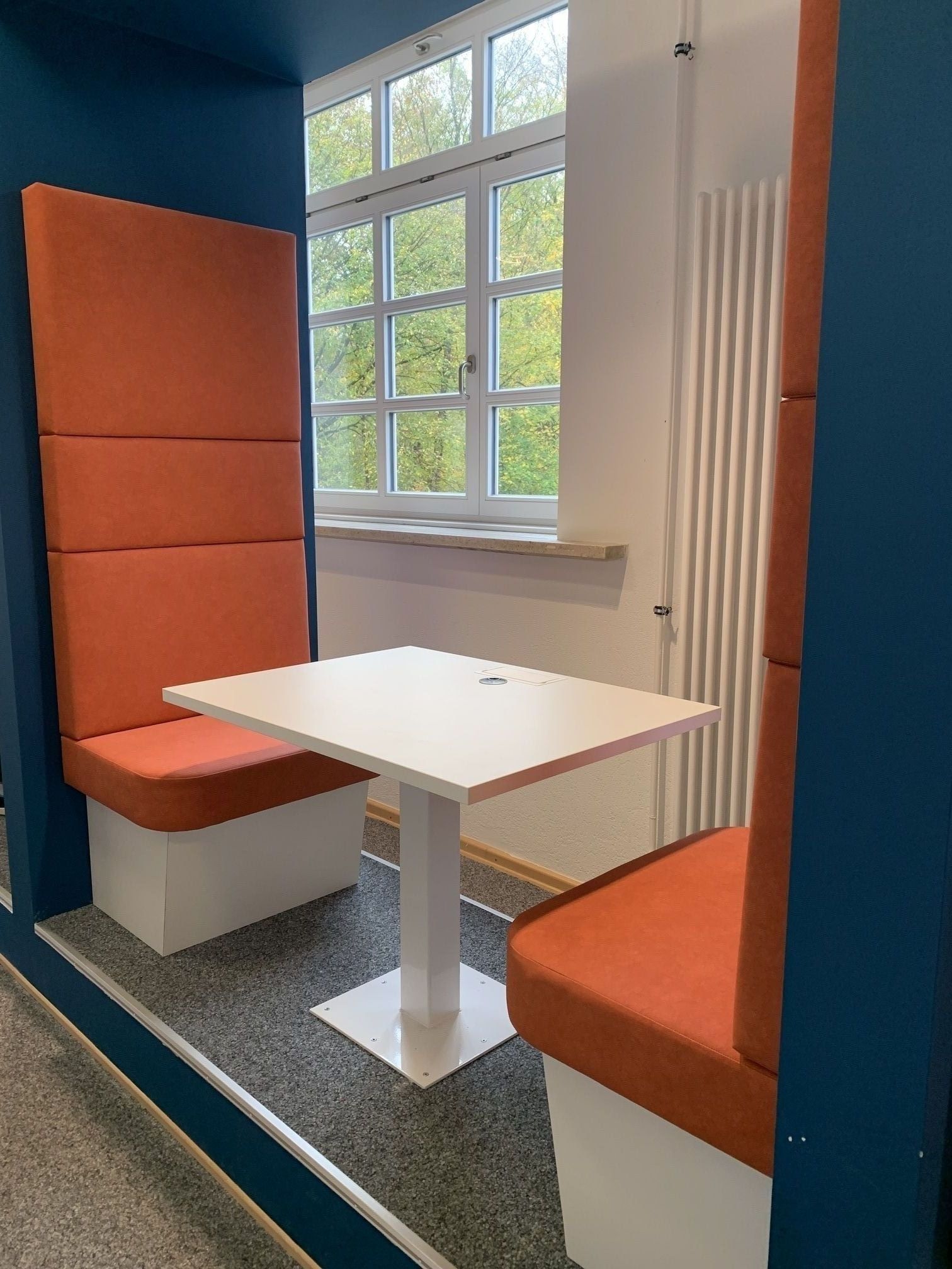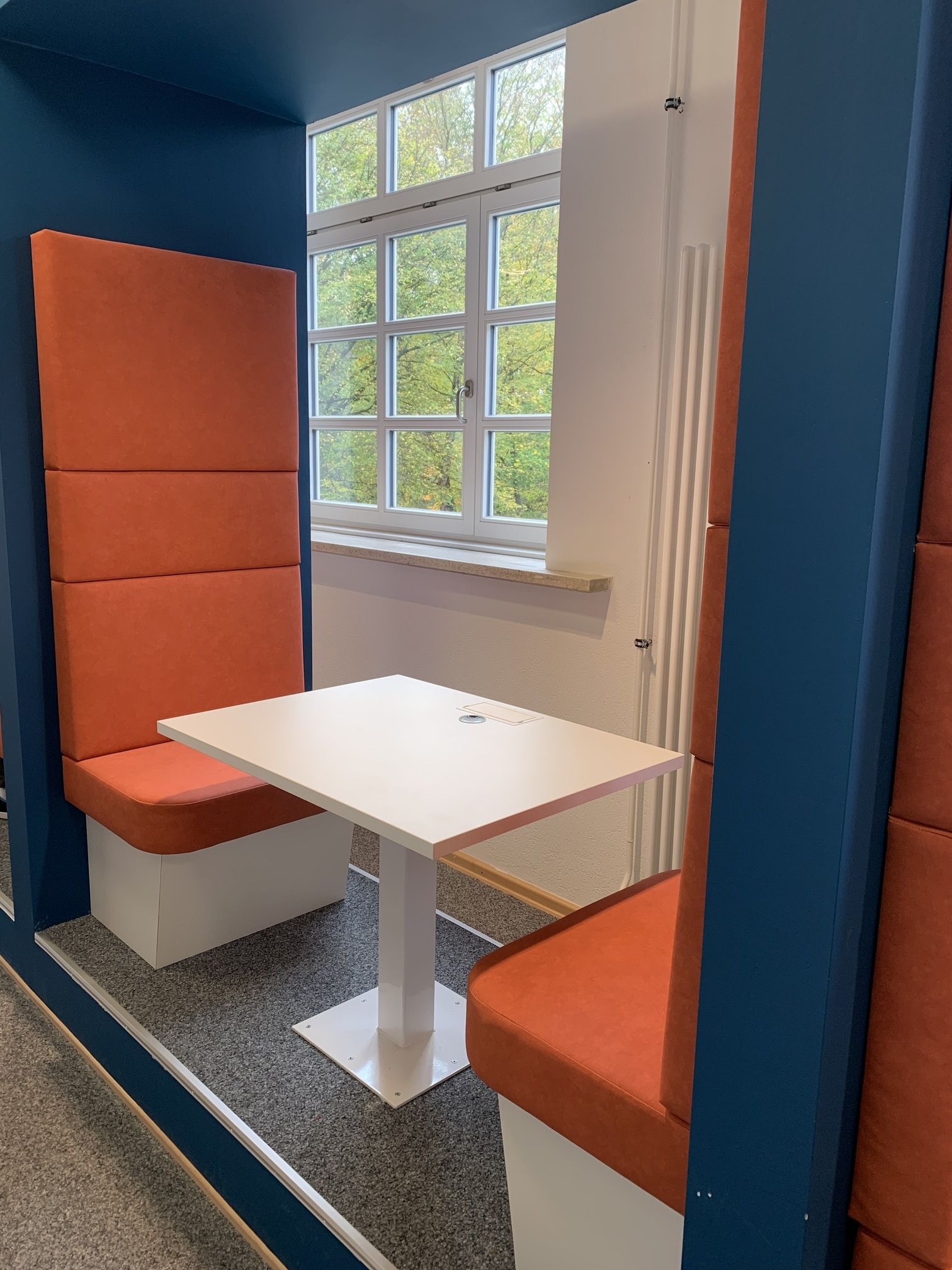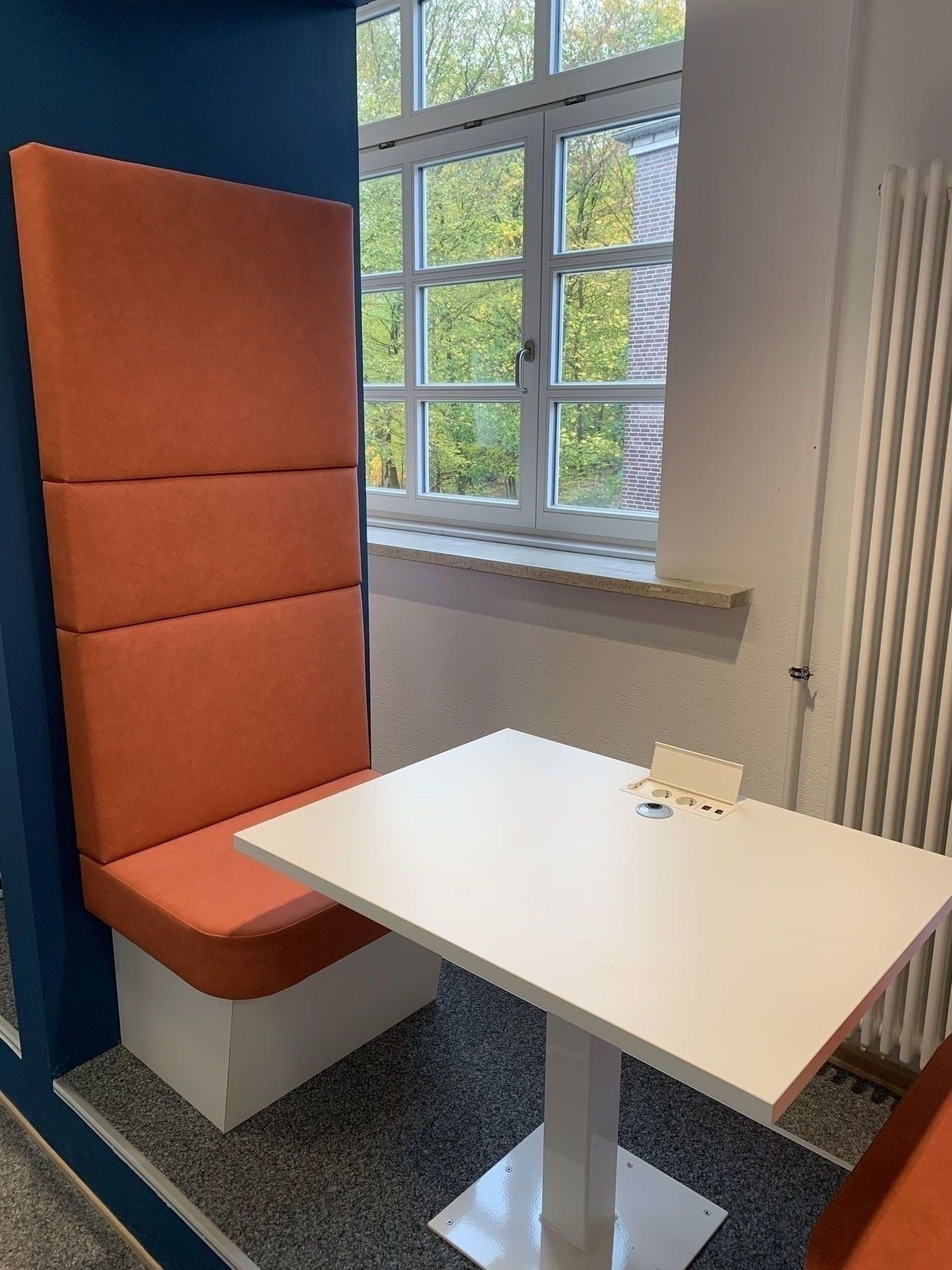 Den Schülern wurden Lerninseln geschaffen, welche dafür sorgen sollte, dass man in Kleingruppen bis zu 4 Personen elektronisch Lerninhalte bearbeiten und isoliert bearbeiten kann. Dazu wurden Sitzflächen, Tische und auch elektronische Anschlüsse in den Tisch eingearbeitet.